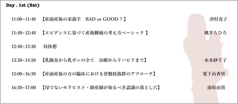 多くのセラピストが産前産後のリハビリの勉強をしつつも、実践できないことがほとんどなのが現在の状況です。一部の実践ができている方も「週一回だけ」「事業として成り立たない」というのが現状です。産前産後のリハビリを行う医師が多くの相談を受け考えて来た内容を今回エクストラという形で昼の休憩時間にお話します。どのように病院にアプローチしたらいいか?どのように個人事業として行えばいいか?どのようにクリニックに売り込めばいいか?少し毛色が違いますが実践的なお話を昼ごはんを食べながら聞いてみてください。