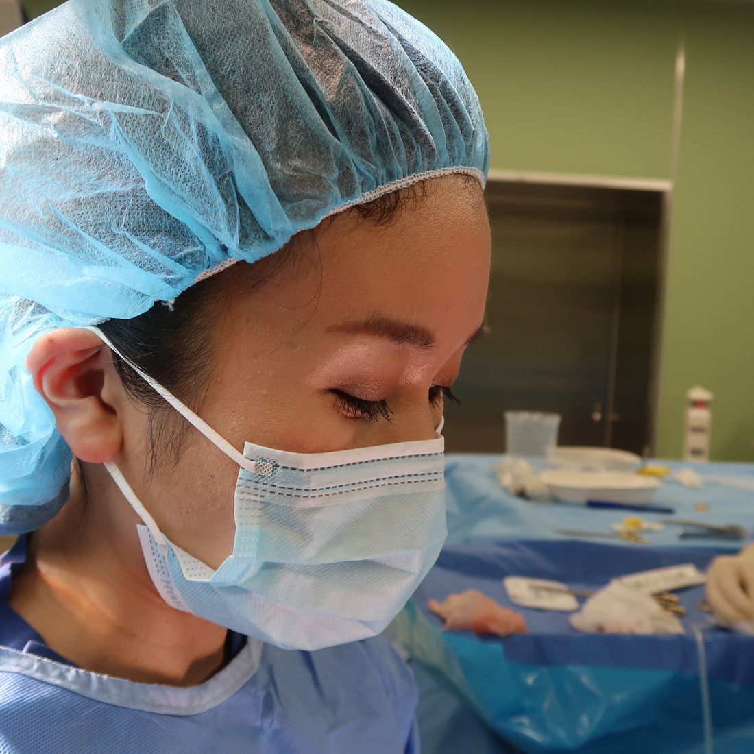 乳腺を徹底的に扱う乳腺外科医として多くの病院でメスを握り、現在神戸大学服属病院大学院で研究を行う一方で後進の指導も行う女性ドクター。多くの症例を経験し日々進歩することを念頭にメスを握り続けている。