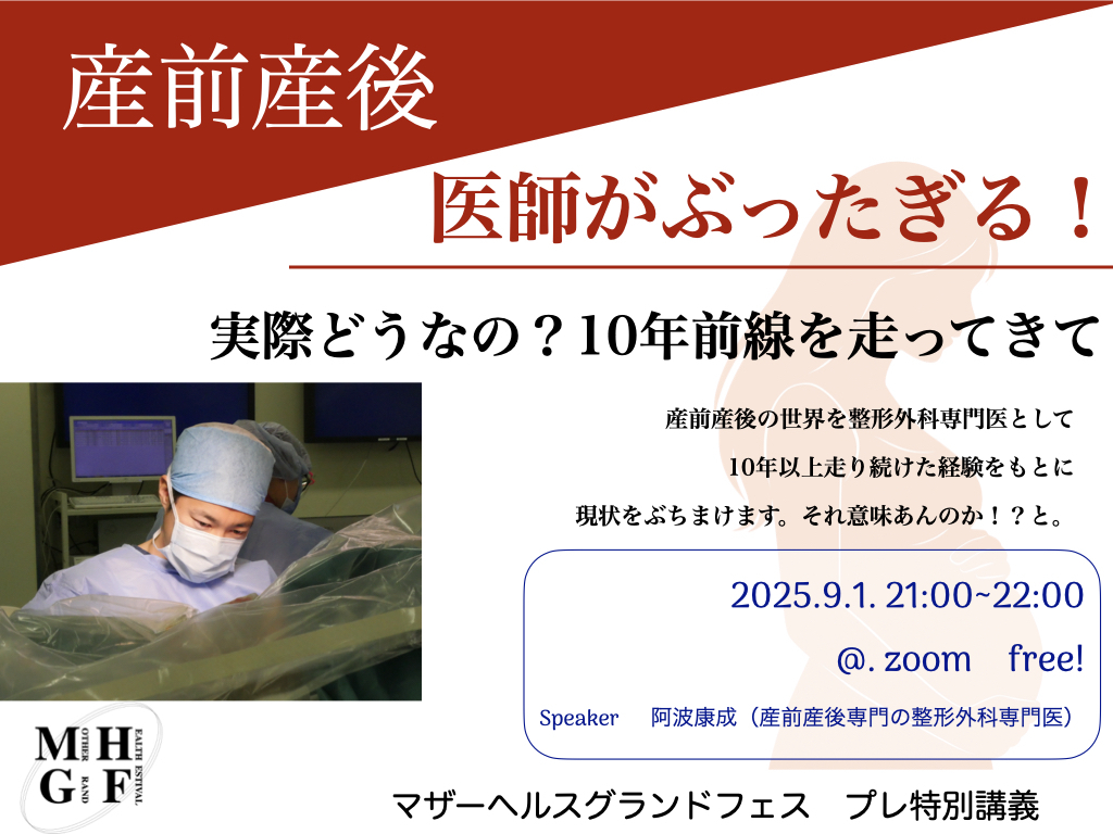 10年ほど産前産後の整形外科医をしてきたぶっちゃけ話をします。骨盤矯正って意味あるの?バキバキ整体は?連携するにはどうするの?実際に保険外産後ケアってやっていけるのか?など他では聞けない内容です。フェスの空気を感じください!